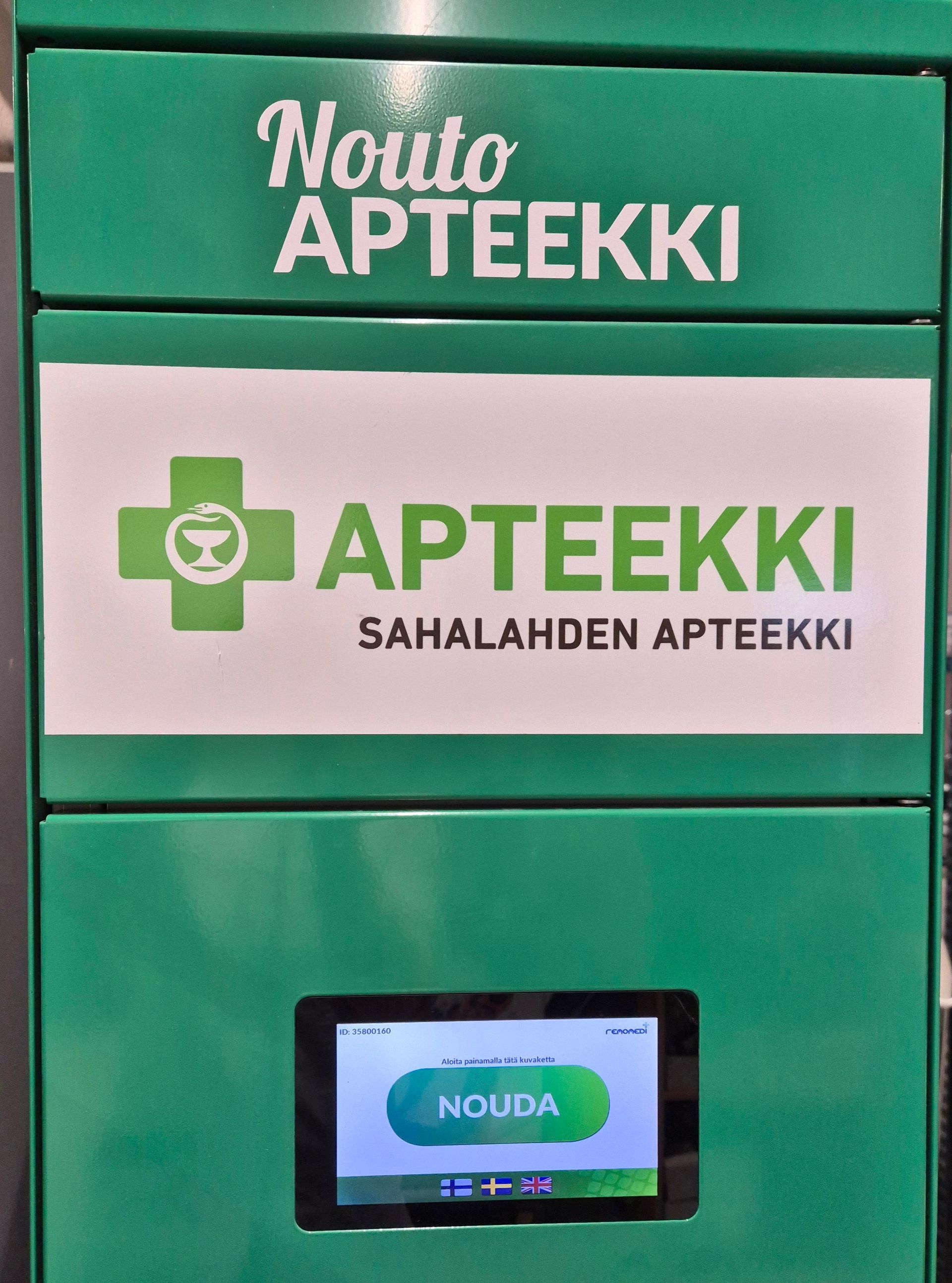 Valmiiksi maksetut apteekkiostokset voi noutaa K-marketissa sijaitsevasta apteekin noutolokerikosta kaupan aukioloaikoina. Laatikosto aukeaa matkapuhelimeen lähetettävällä tekstiviestikoodilla. Helppoa kuin mikä!